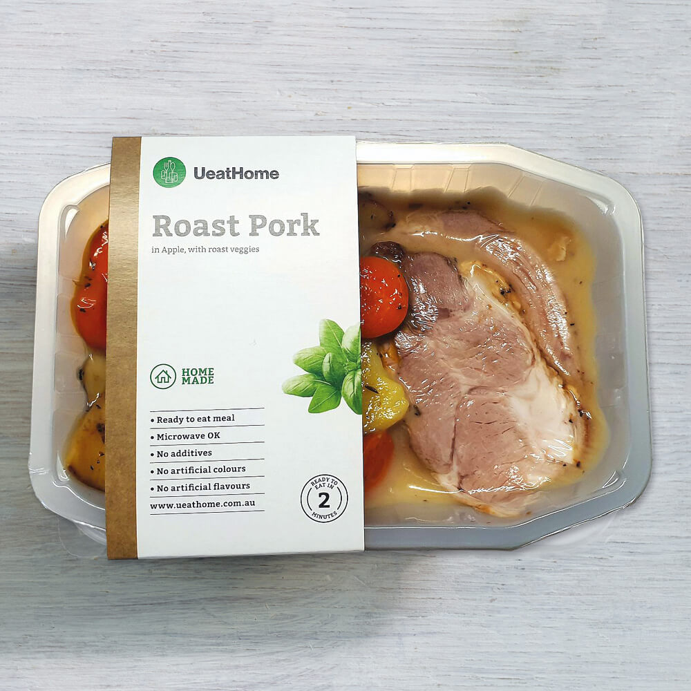 Ingredients: Mush potato (43%),Pork Scotch filet (24%), gravy ( flour, butter, pork fat, parsley, pork stock( water, salt, pepper.) (20%), Baked Pumpkin 50g (13 %).